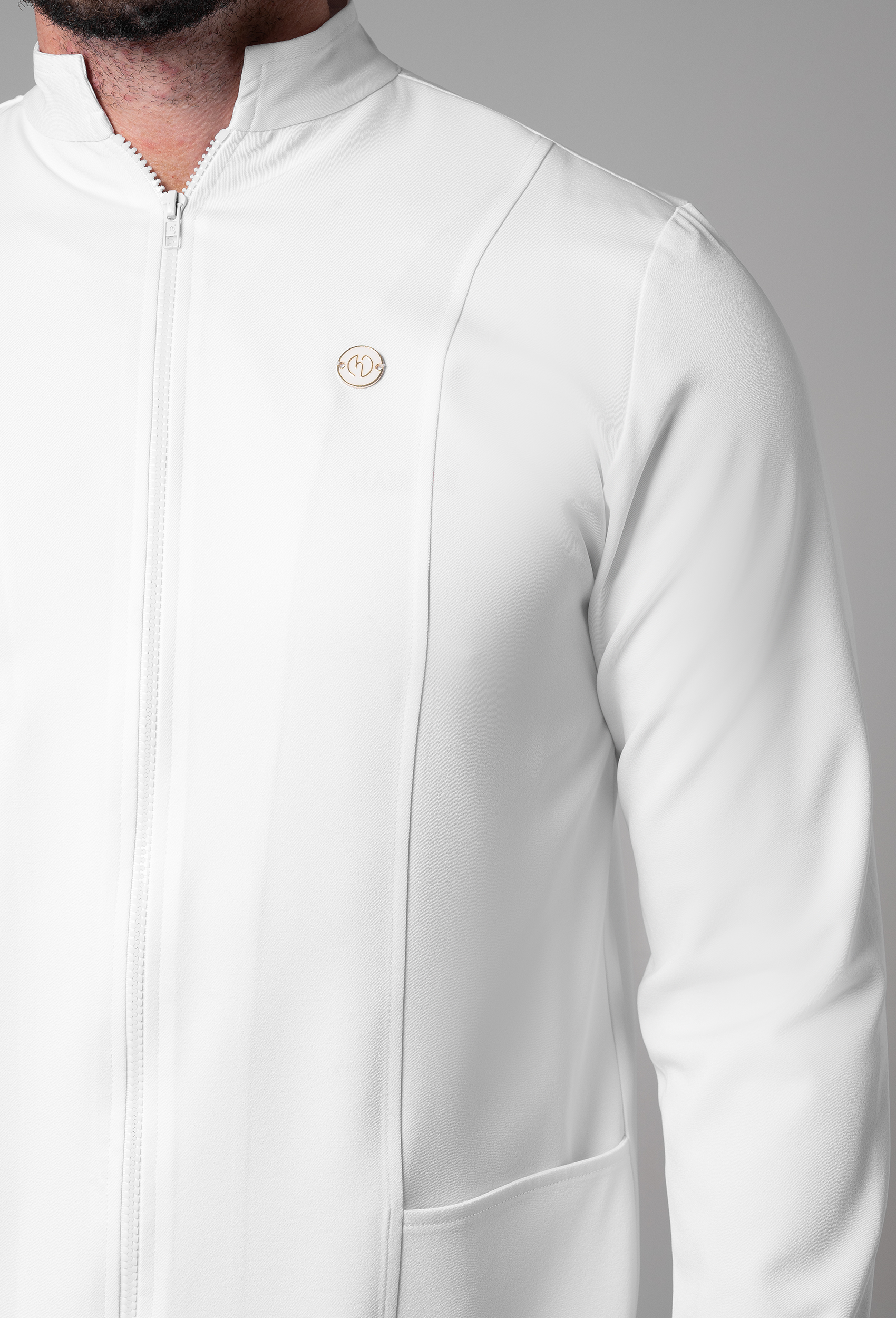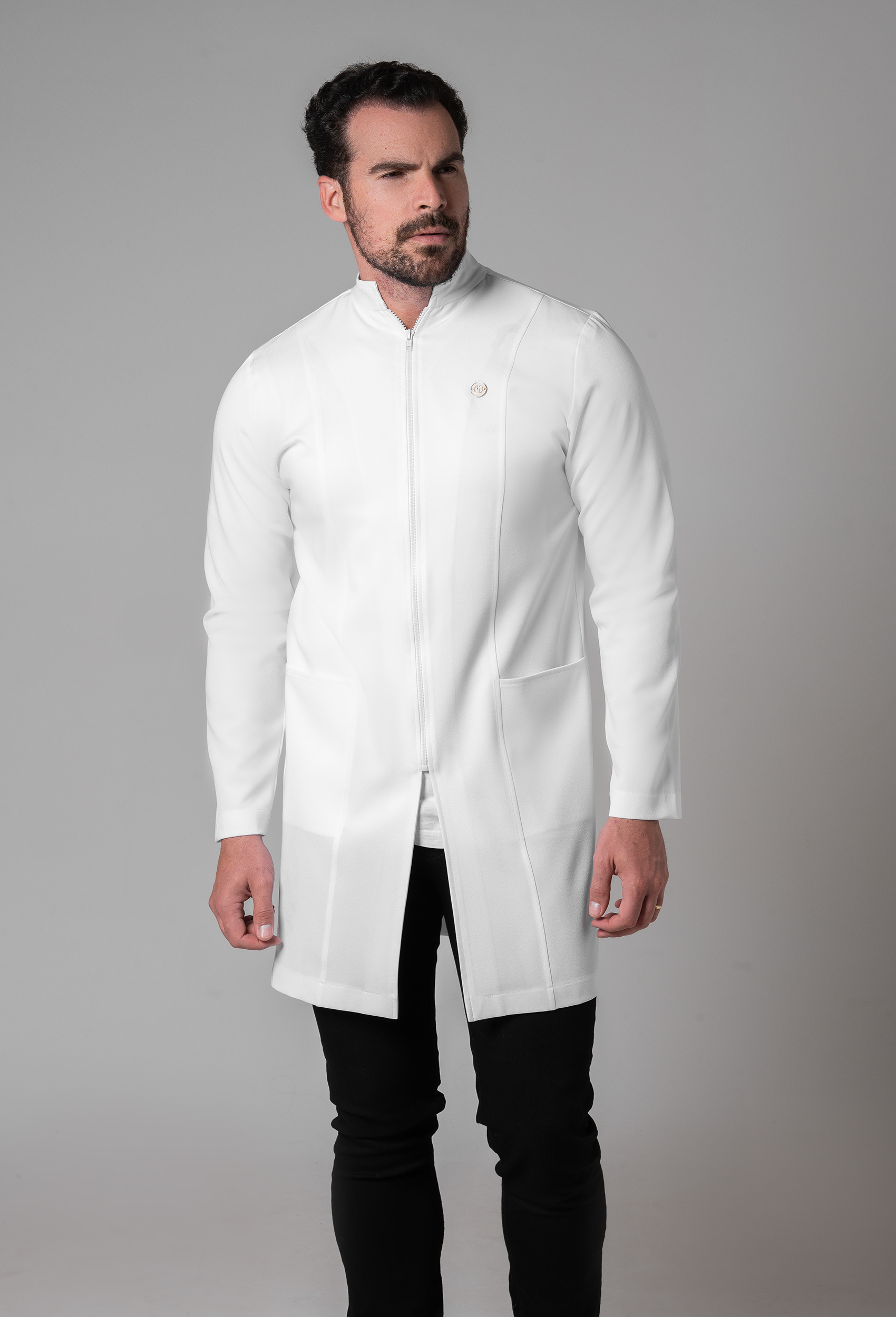 Jaleco confeccionado em tecido 95% poliester e 5% elastano. Um jaleco moderno, fácil de lavar e cuidar, que foi feito para durar por bastante tempo. Possui bolsos embutidos, fechamento em zíper, e manga com punho. Esse jaleco é perfeito para quem busca estilo e conforto ao mesmo tempo.