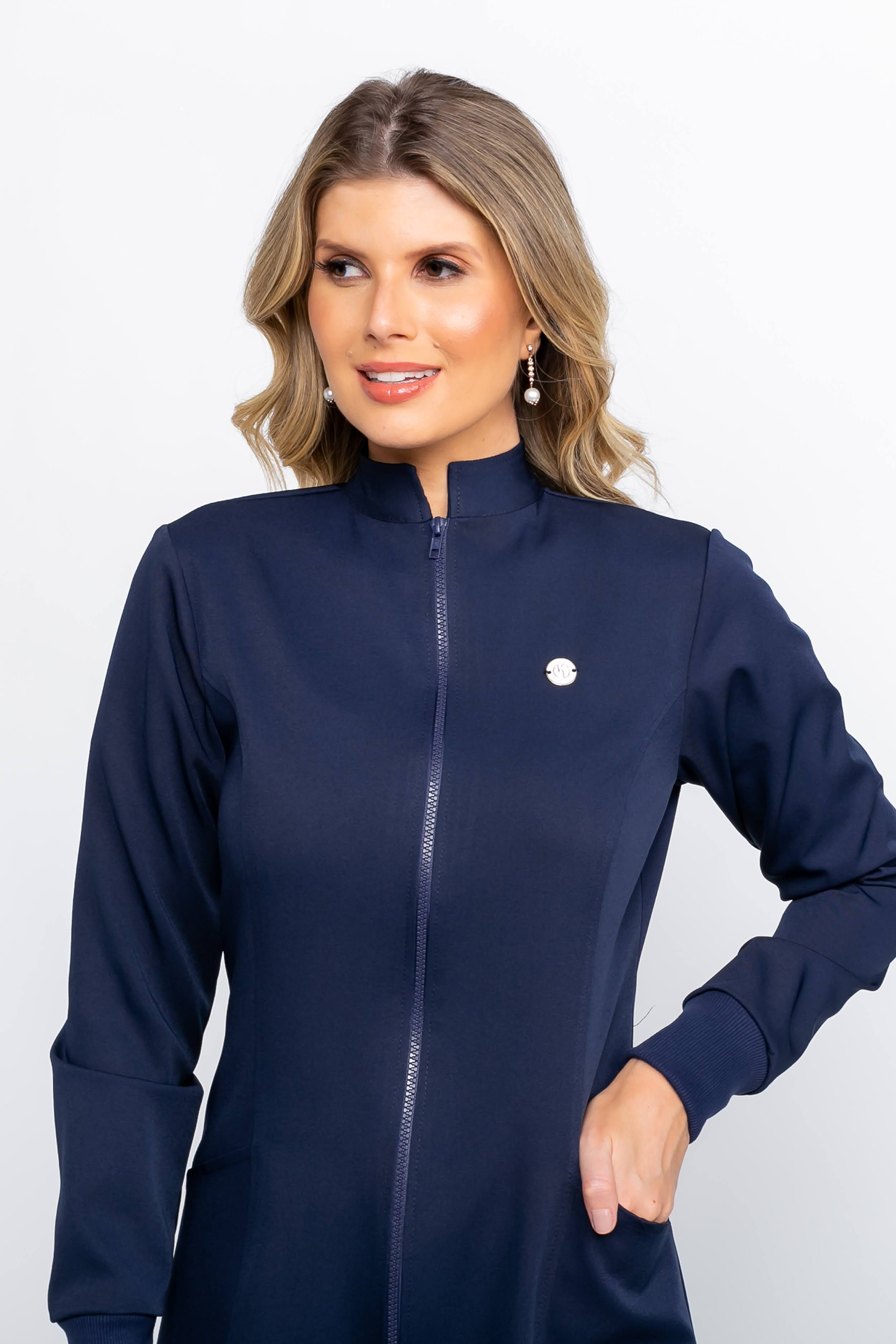 Jaleco confeccionado em tecido 95% poliester e 5% elastano. Um jaleco moderno, fácil de lavar e cuidar, que foi feito para durar por bastante tempo. Possui bolsos embutidos, fechamento em zíper, e manga com punho. Esse jaleco é perfeito para quem busca estilo e conforto ao mesmo tempo.