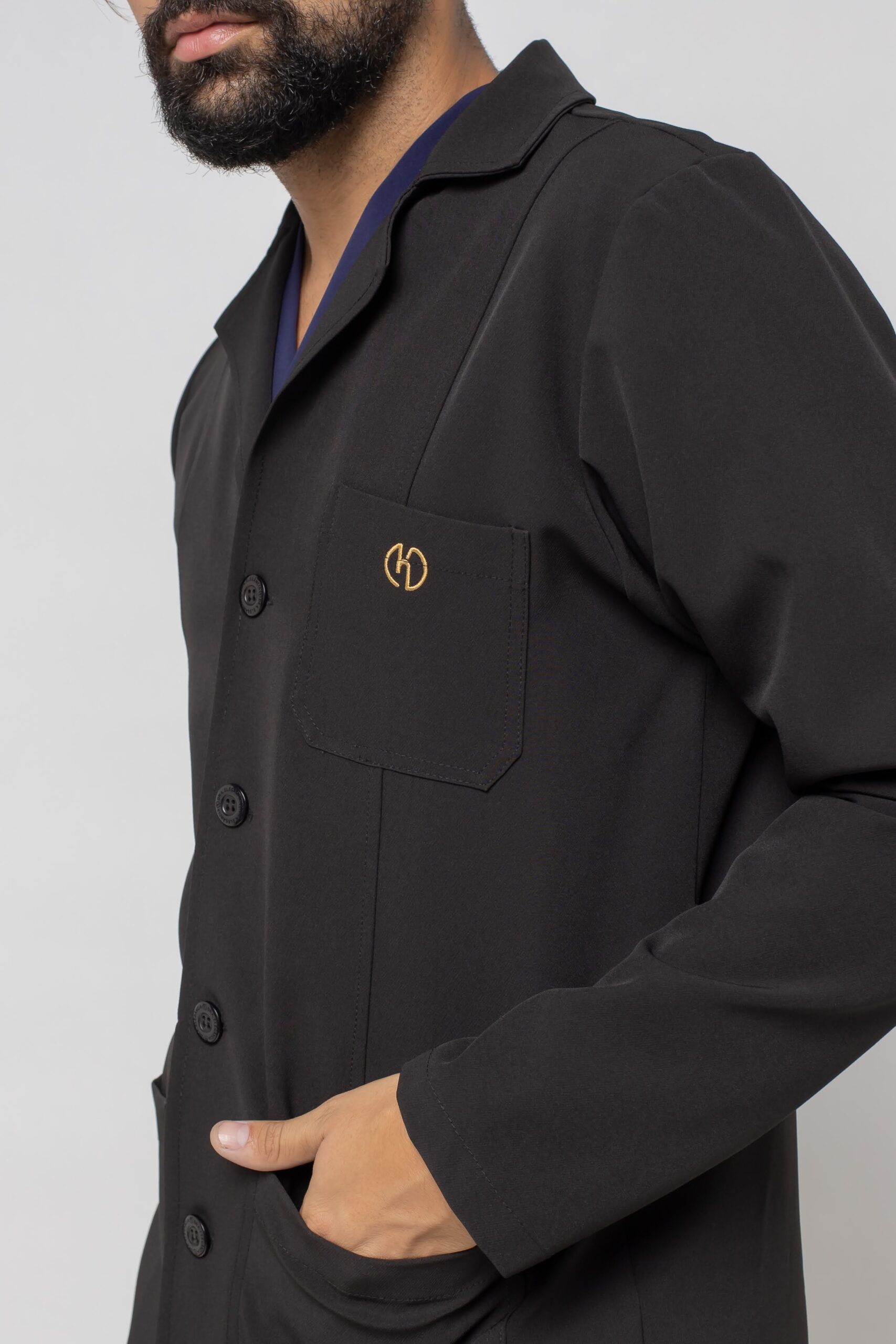 Jaleco confeccionado no tecido alfaiataria prime, de fácil lavagem e de durabilidade longa, com um toque macio e confortável. Feito no tecido com elastano, é um modelo clássico, bem estiloso, e tem um caimento perfeito. Um jaleco bem confortável para o dia a dia no trabalho.
