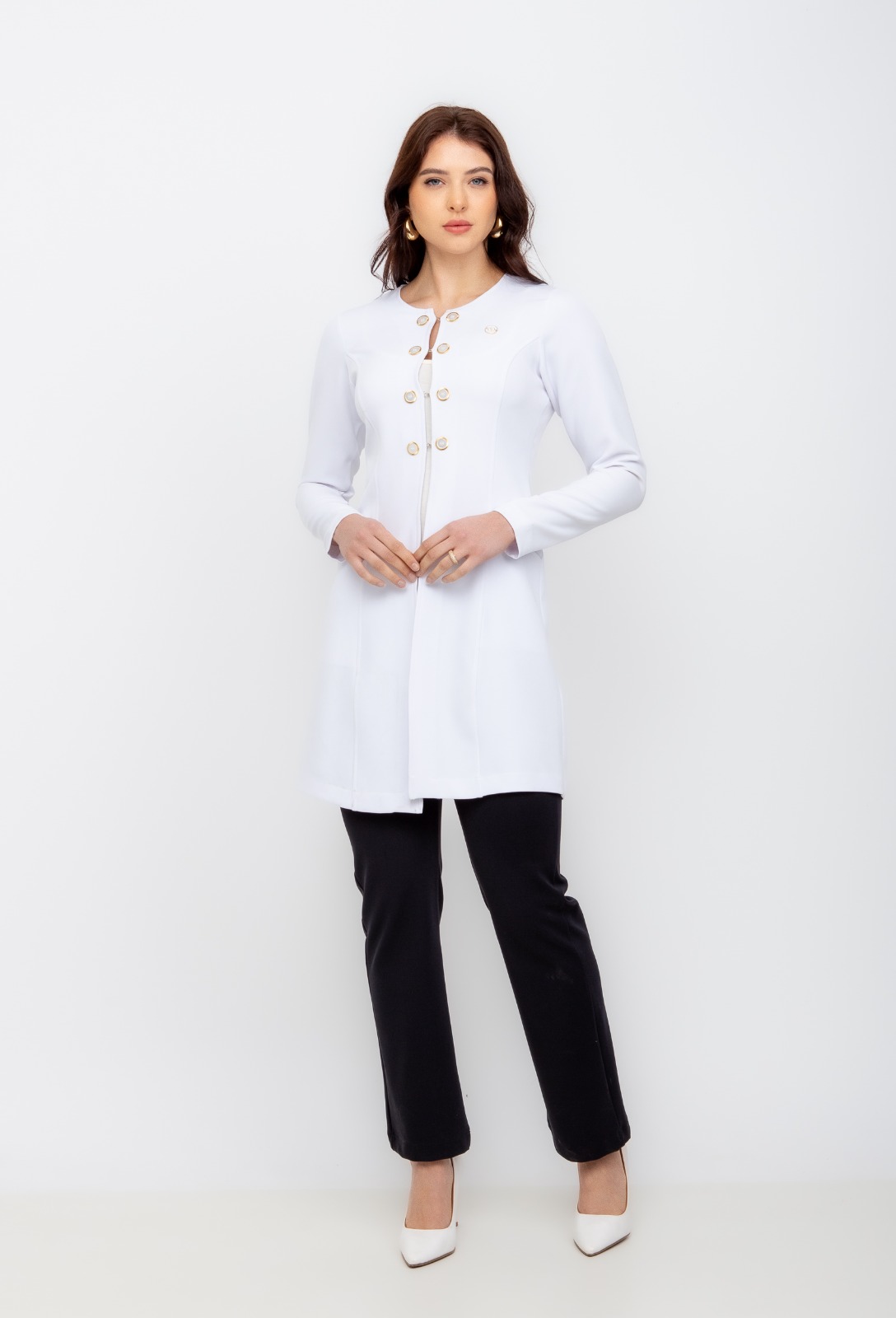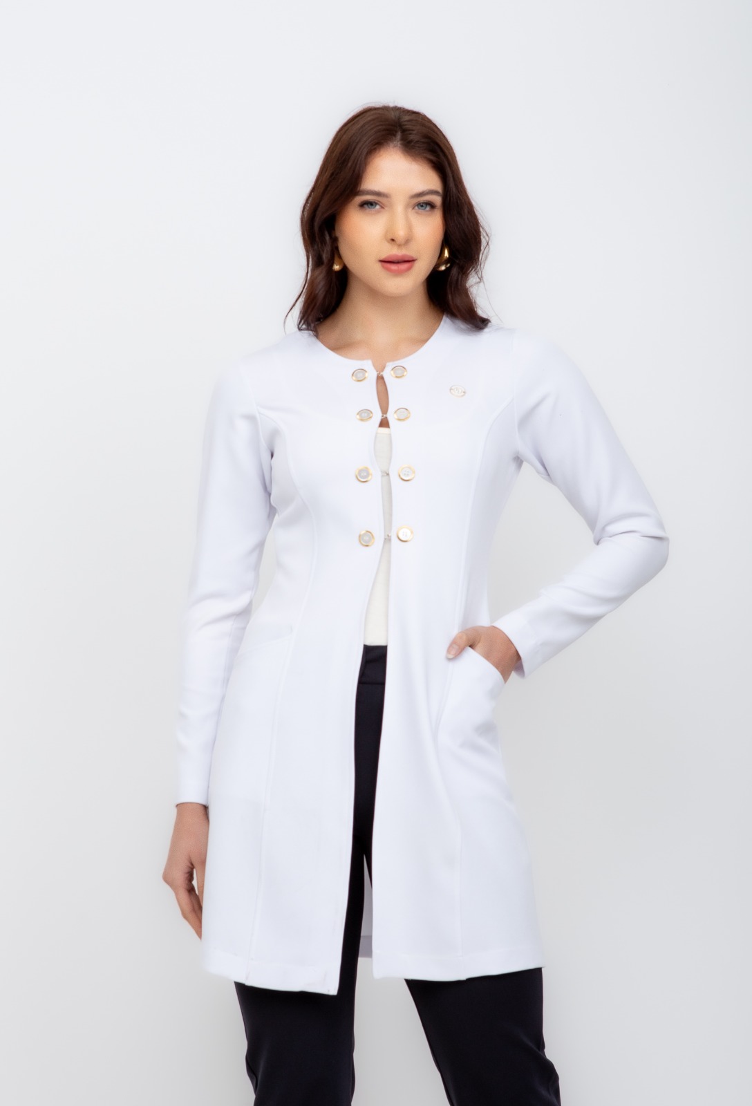 Com uma modelagem perfeita, esse jaleco é a peça perfeita para quem busca conforto e elegância no seu dia a dia de trabalho.