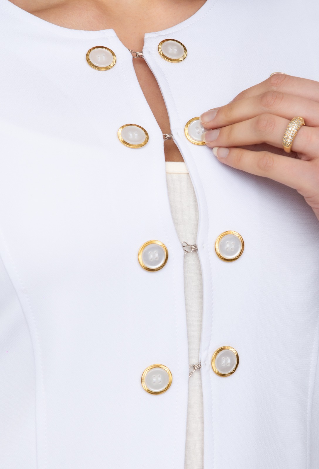 O diferencial desse modelo fica nos oitos botões, com fecho em gancho proporcionando conforto e praticidade. E os detalhes em dourado dão toque de elegância.