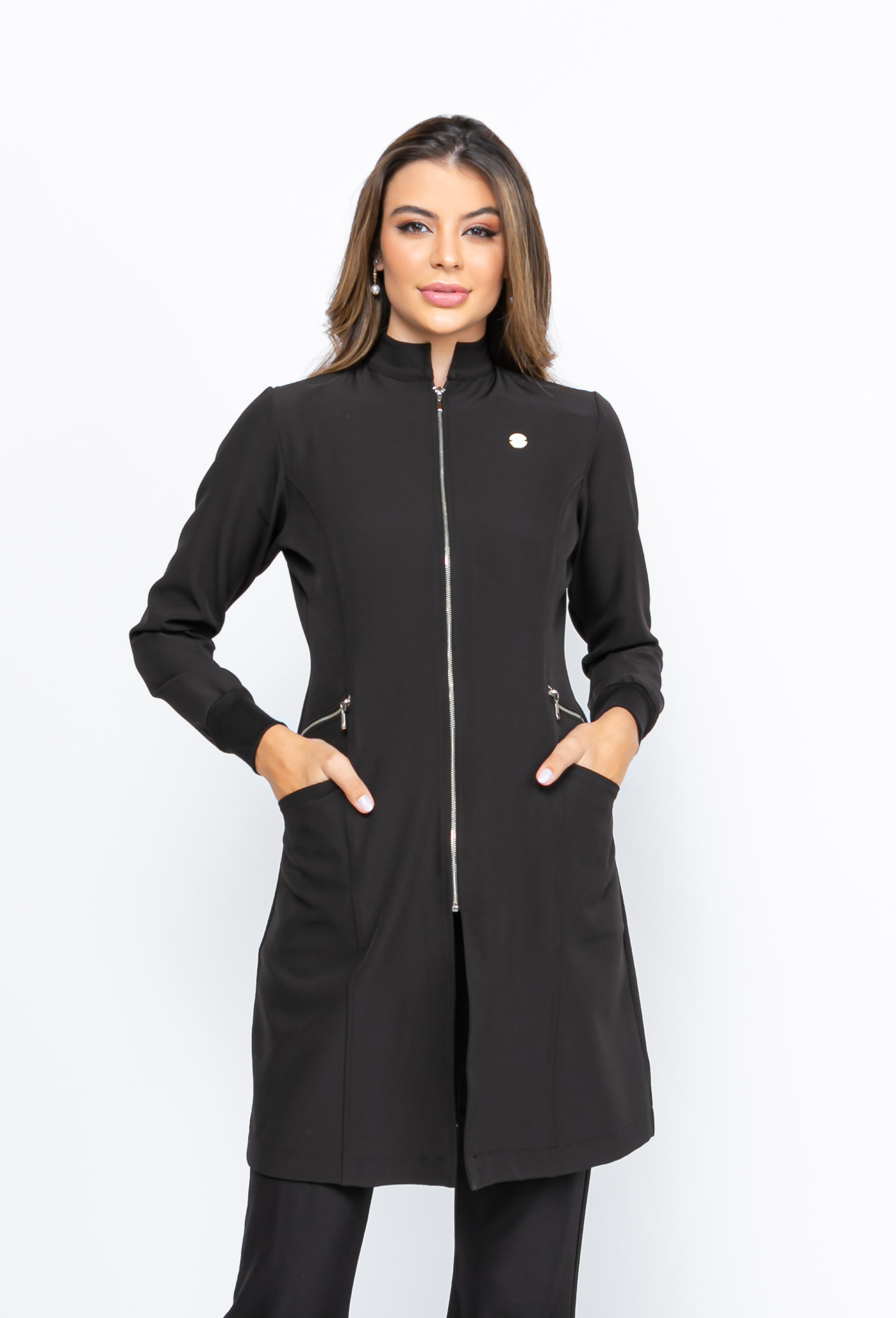 O lançamento jaleco zíper prime elegante, confeccionado no tecido alfaiataria, tendo a composição 95% poliéster e 5% elastano, dando um toque de suavidade e sendo super confortável.