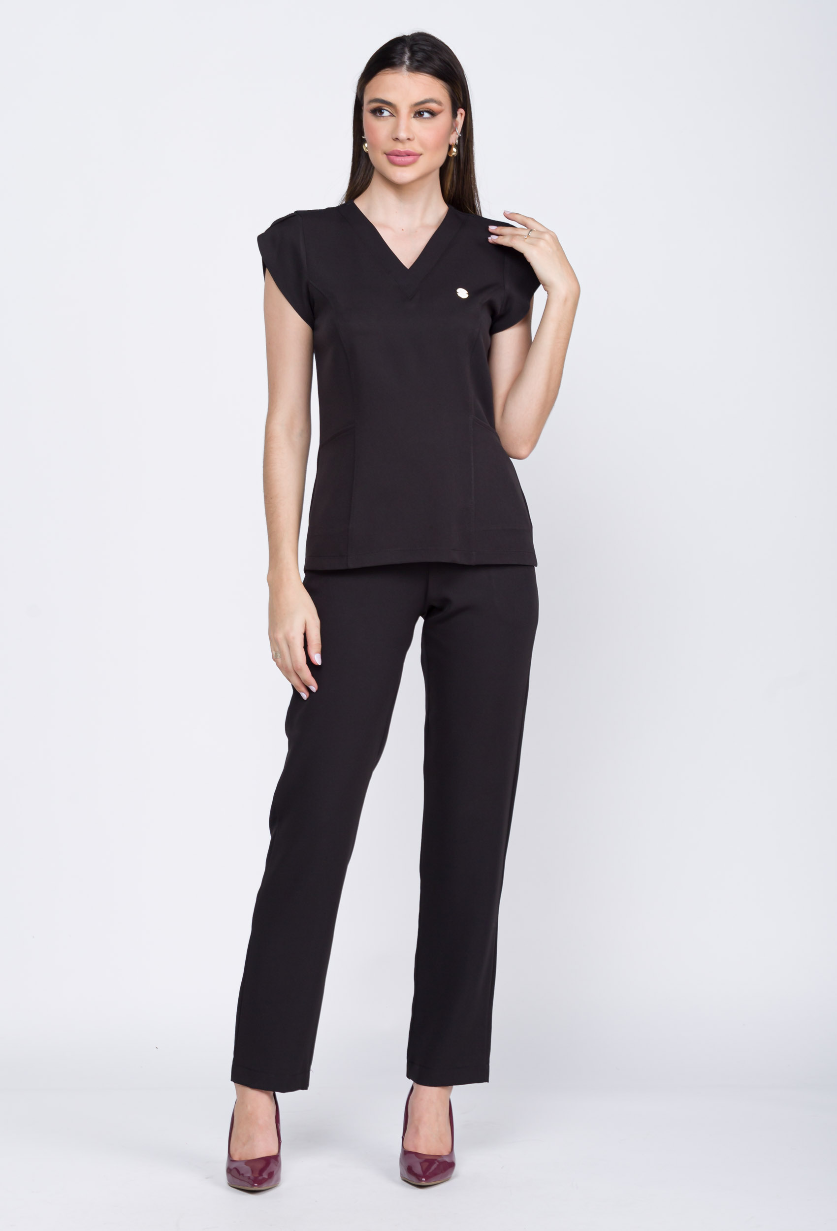A blusa do nosso modelo scrub barbie liso tem uma gola v, com recorte no corpo que deixa acinturado, possui bolsos e as mangas possuem abertura transpassado, dando charme ao modelo.