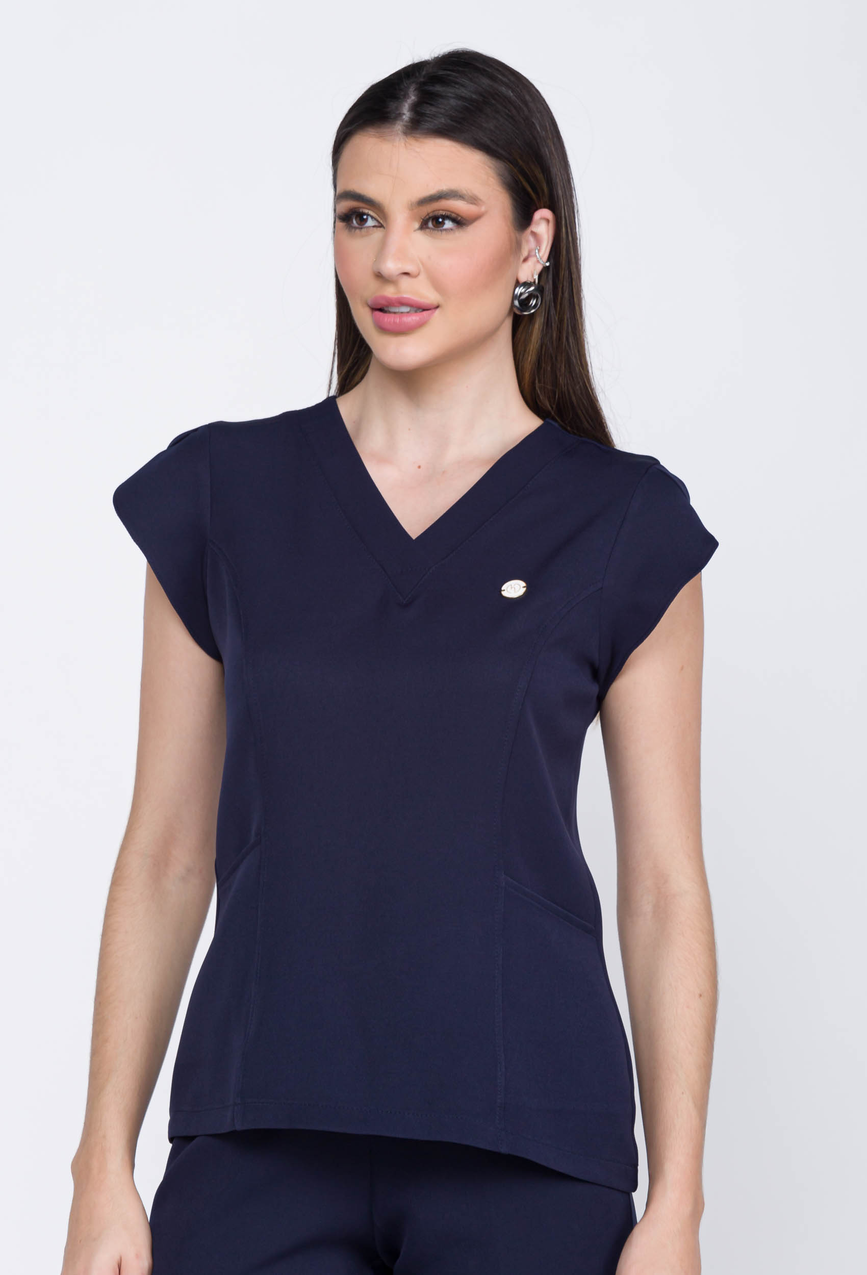 A blusa do nosso modelo scrub barbie liso tem uma gola v, com recorte no corpo que deixa acinturado, possui bolsos e as mangas possuem abertura transpassado, dando charme ao modelo.