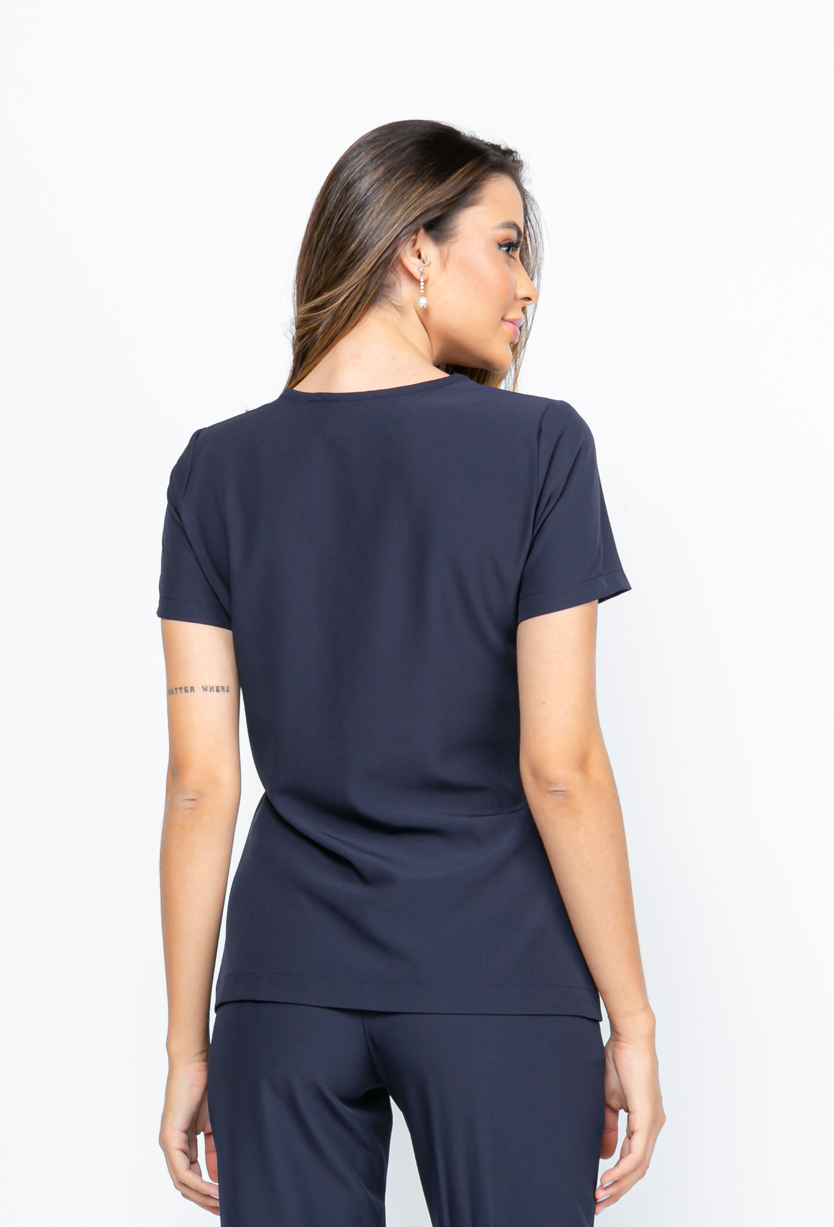 A blusa do nosso modelo scrub crep new luanda, possui 3 botões na gola redonda, facilitando a vestimenta, com dois bolsos quadrados na frente.