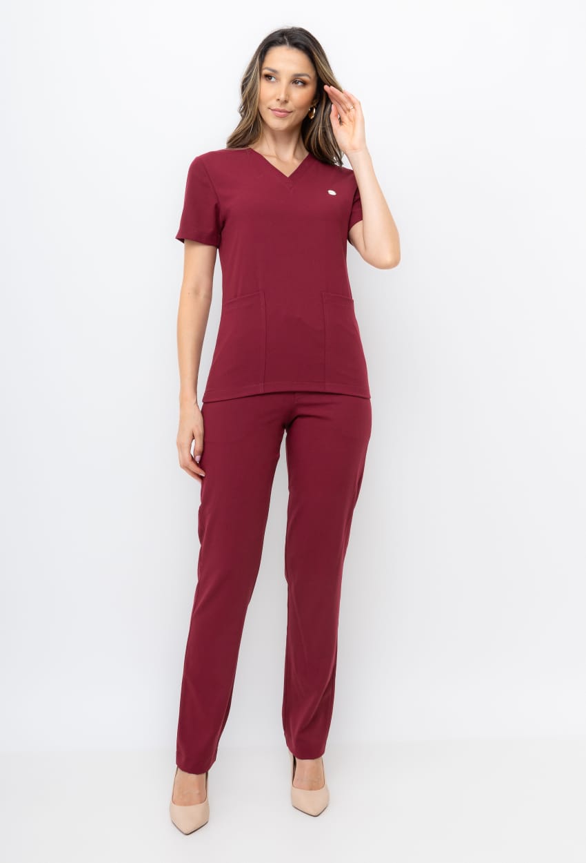 O scrub element clássico possui em sua composição 62% poliester e 33% viscose e 5% elastano. O toque da viscose proporciona leveza e todo o conforto.