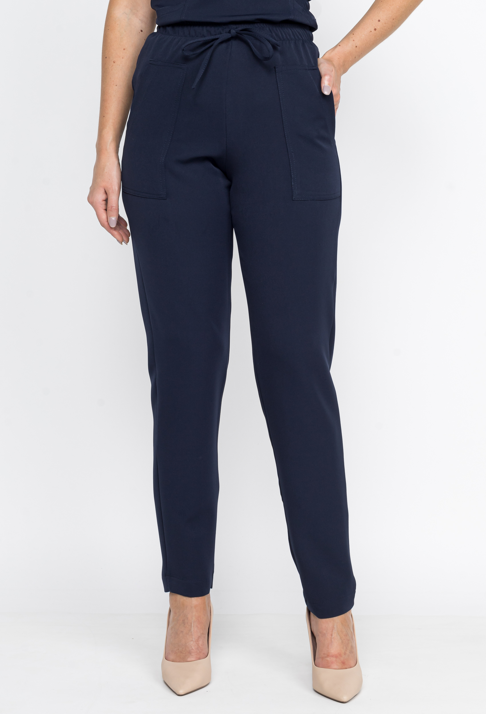 Já a calça é o nosso modelo tradicional, que contém bolsos e também elástico na cintura com cordão para regulagem. Possui um caimento perfeito, com a barra reta.