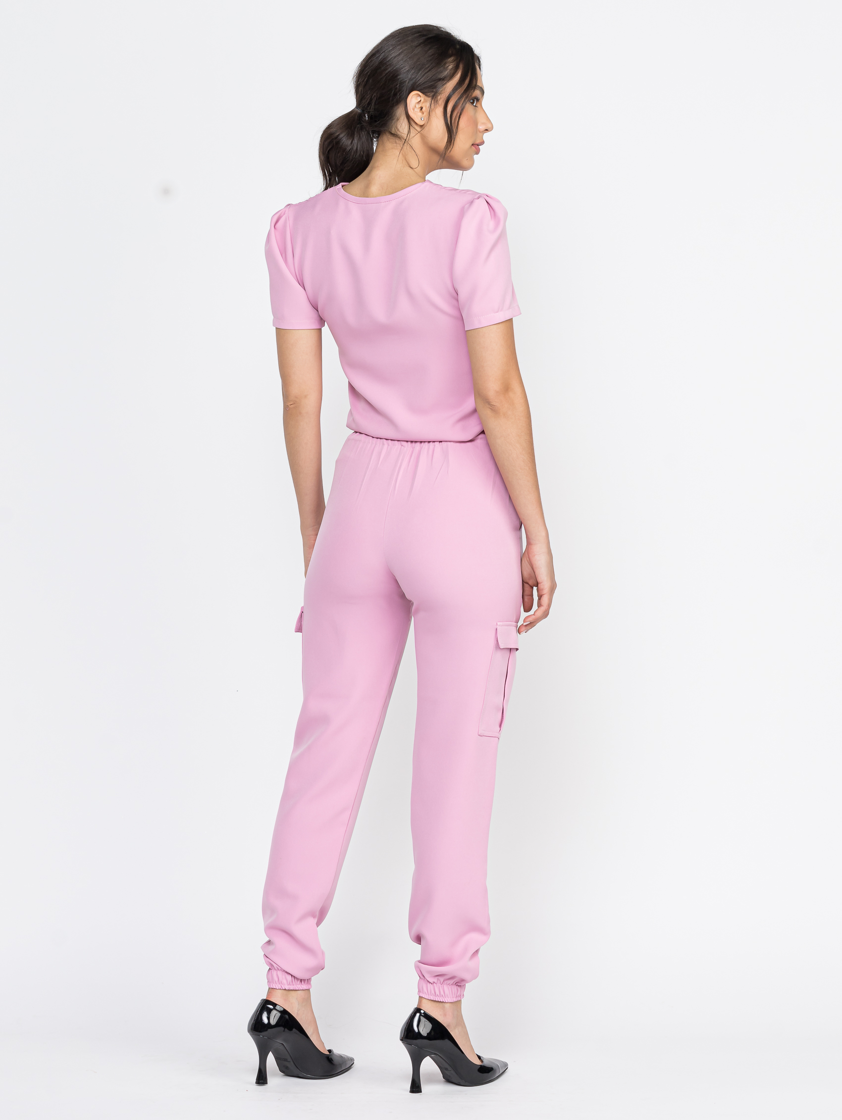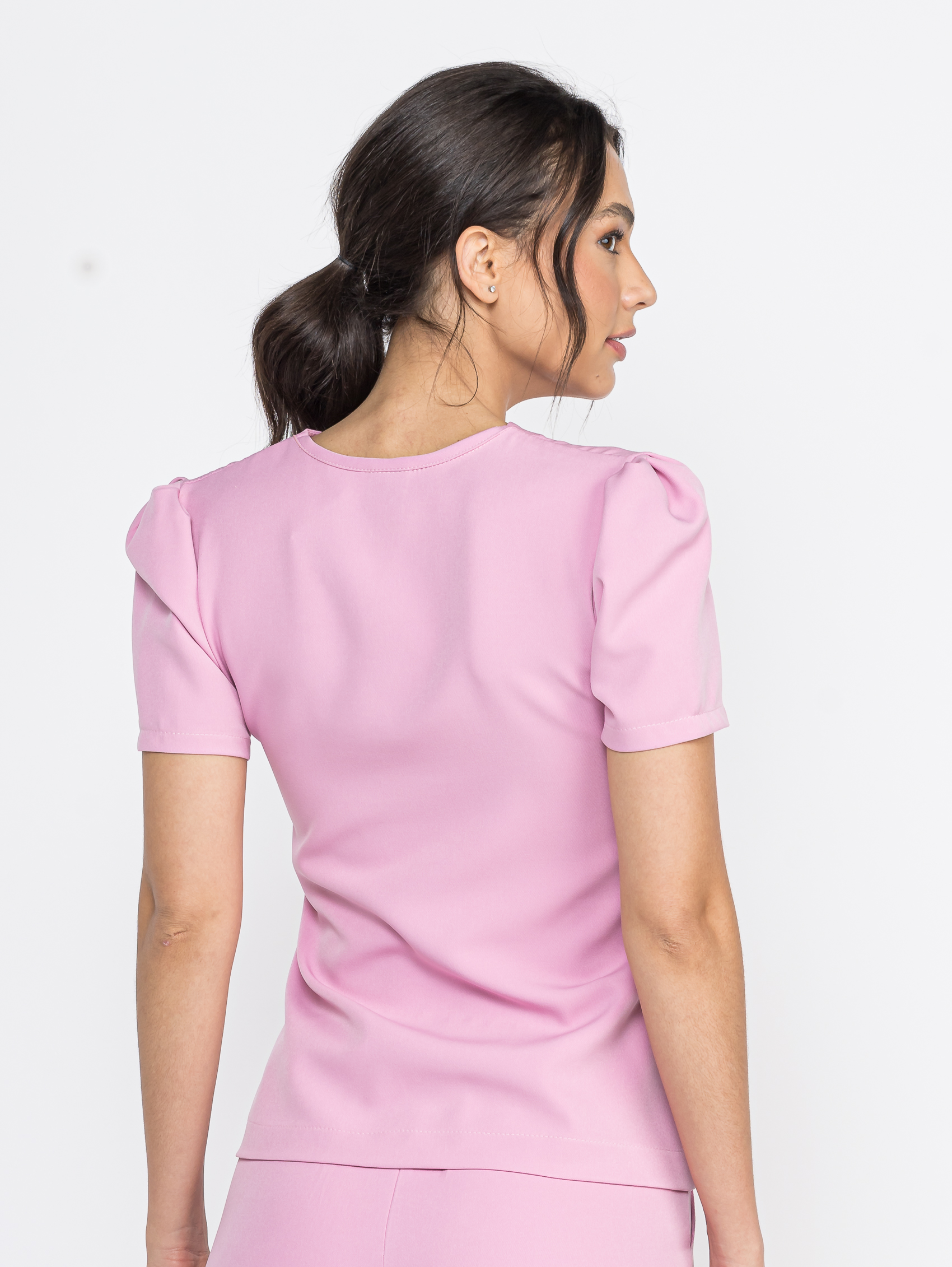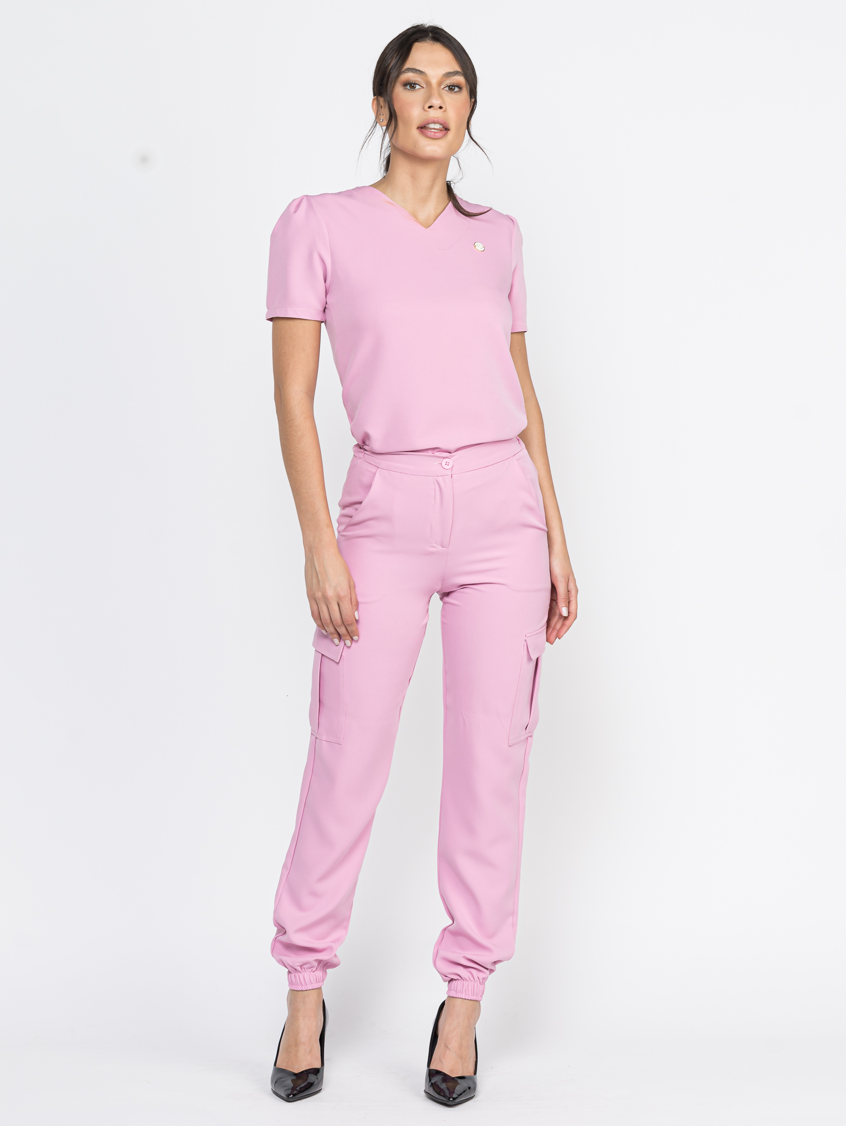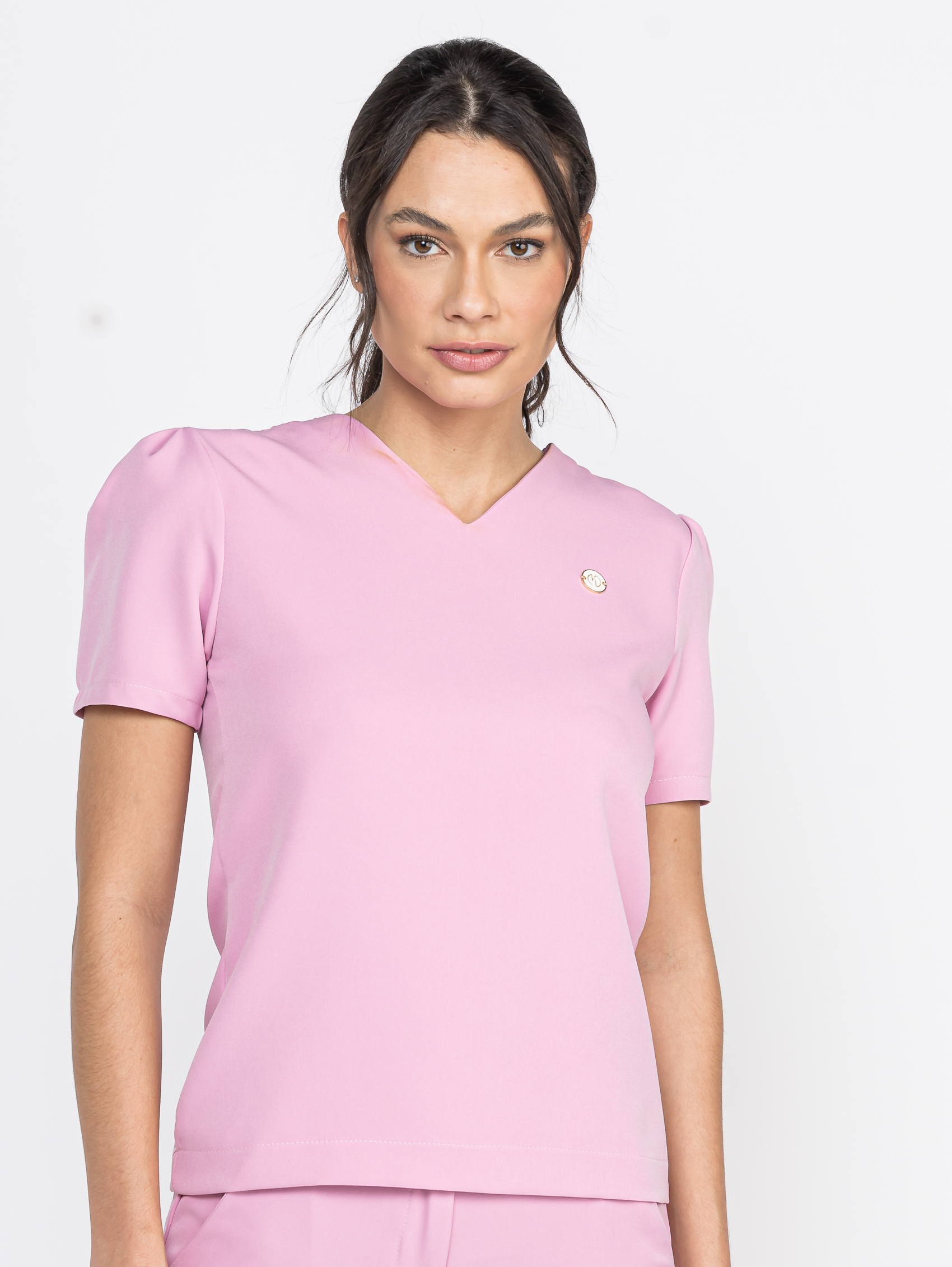 Scrub feminino barbie luxo, confeccionado no tecido barbie alfaiataria com composição de 95% poliéster e 5% elastano.