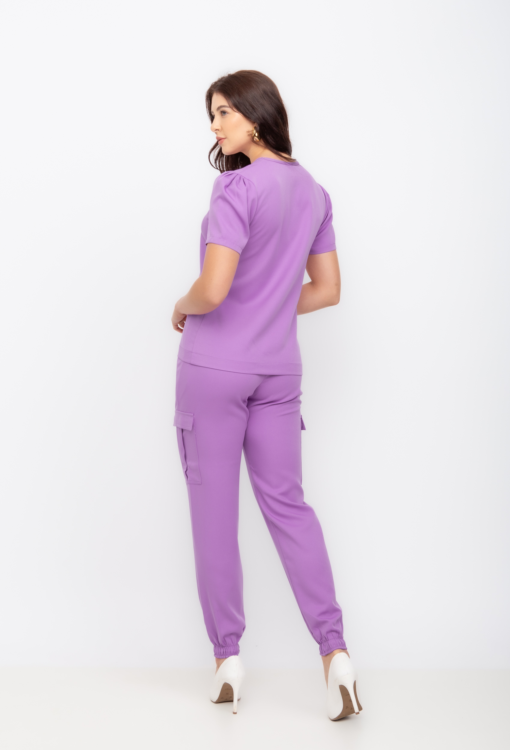 Scrub feminino barbie luxo, confeccionado no tecido barbie alfaiataria com composição de 95% poliéster e 5% elastano.