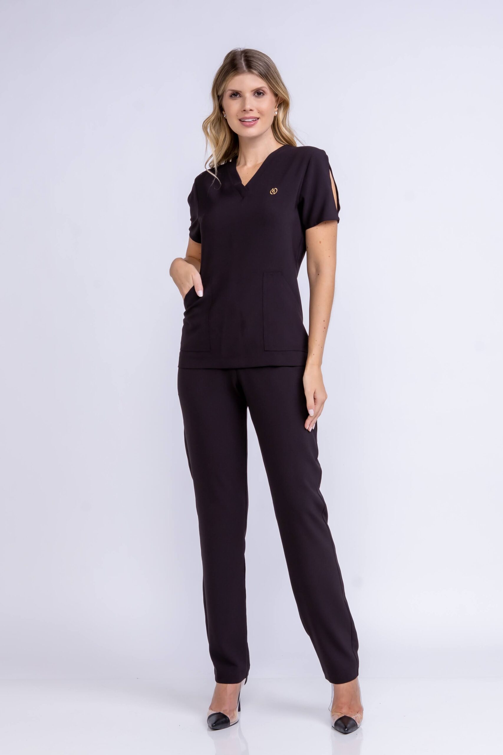 Scrub feminino crep yves 2, feito no tecido crep. Um modelo bem estiloso e moderno, leve e fresco, dando conforto e elegância no seu dia a dia. É um scrub de fácil lavagem, longa durabilidade e não amassa facilmente.