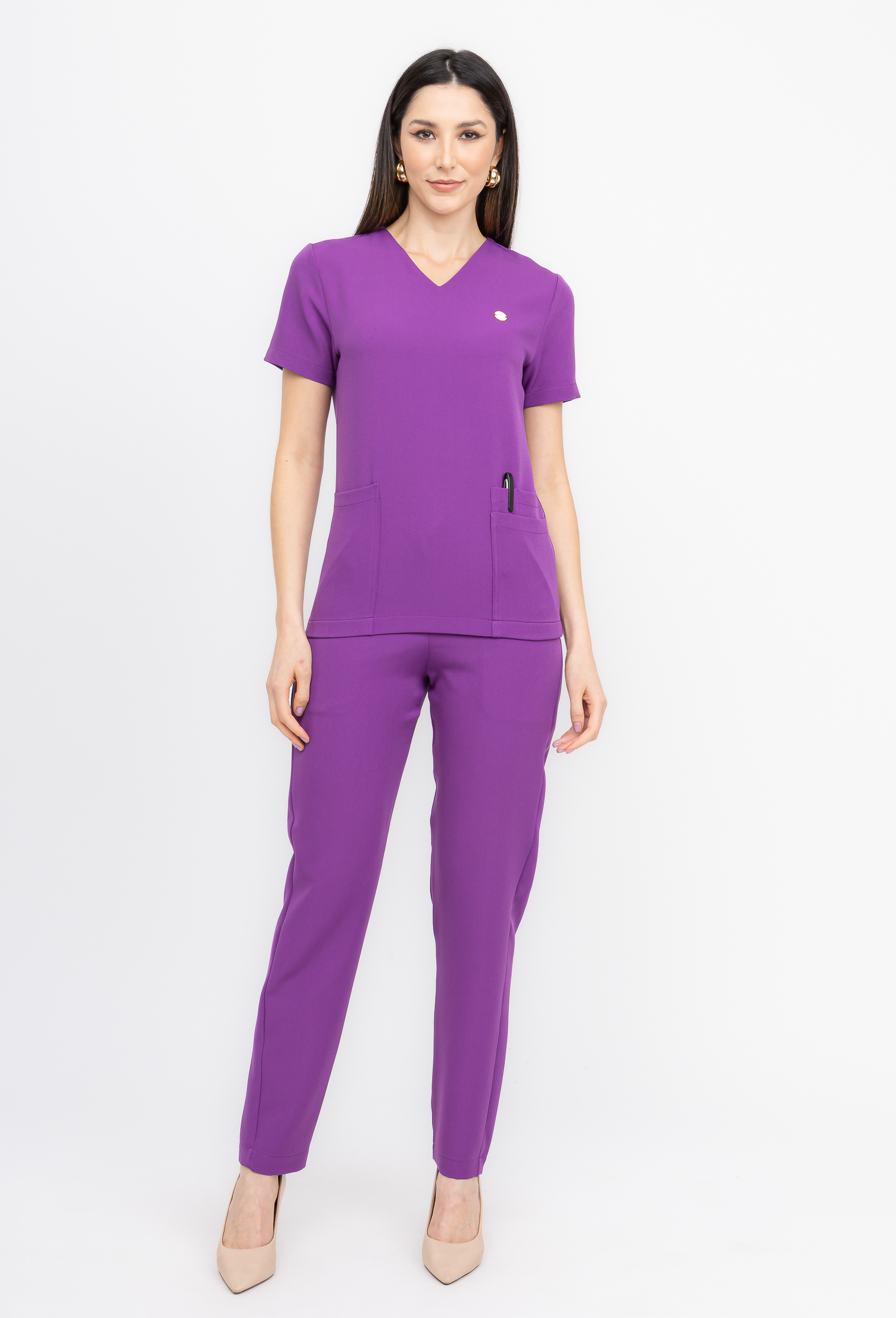 É um modelo bem estiloso e moderno, confortável e com um caimento acinturado no corpo. Sendo um scrub de fácil lavagem, de longa durabilidade e não amassa com facilidade.