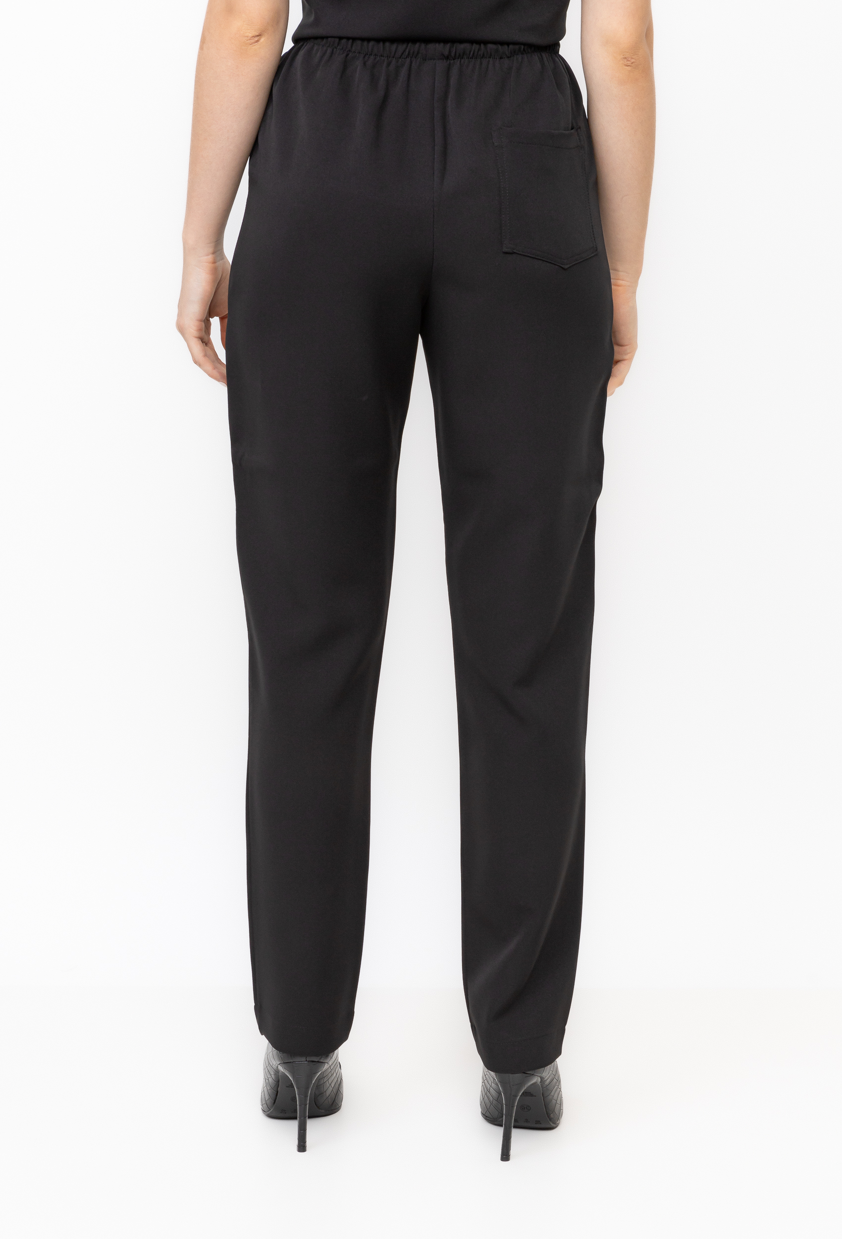 A calça básica com bolsos faca, elástico na cintura com cordão para regulagem.